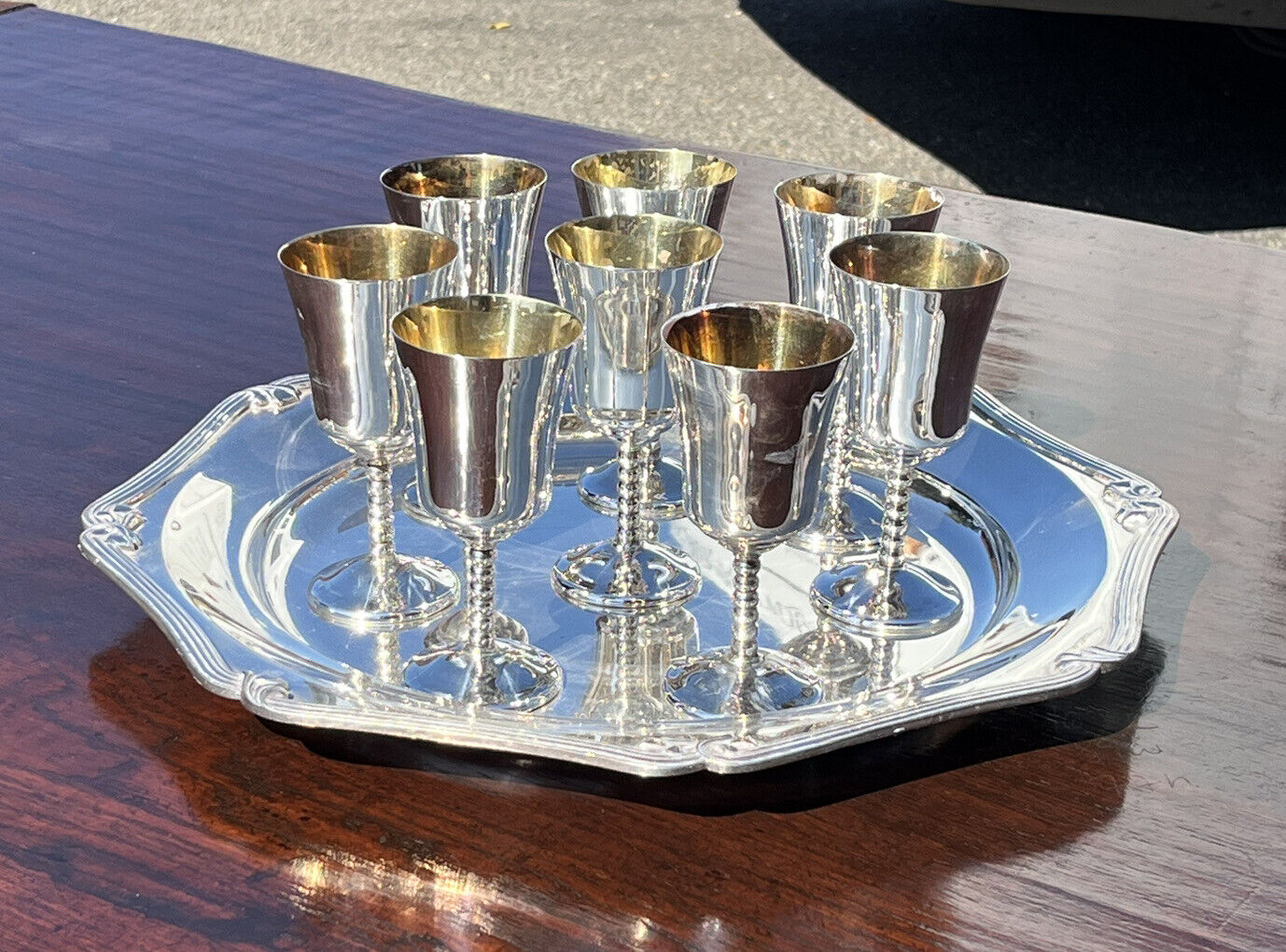 8 Silver Plate Goblets On A Silver Plate Tray